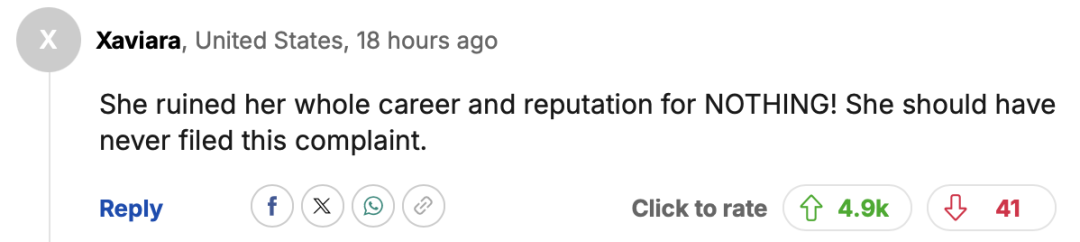 “她白白毁了自己的事业和名誉!她根本就不该提起诉讼。”