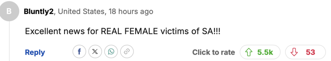 “对于真正遭受性侵犯的女性受害者来说,这是个好消息!!!”