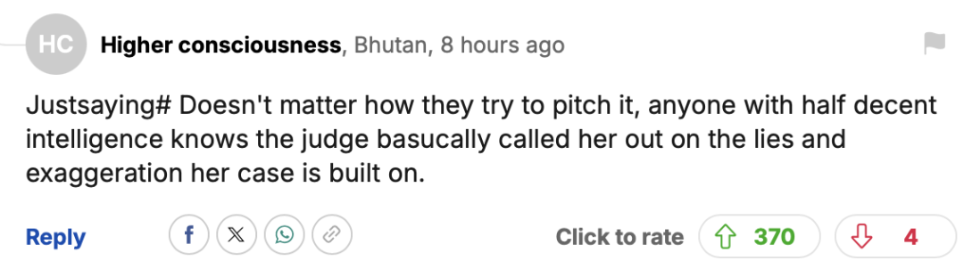“#随口一说# 不管他们怎么巧舌如簧地粉饰,只要智商稍微在线的人都明白:法官实际上已经当面戳穿了她那些谎言与夸大其词——而这正是她整个案件所赖以构建的基础。”