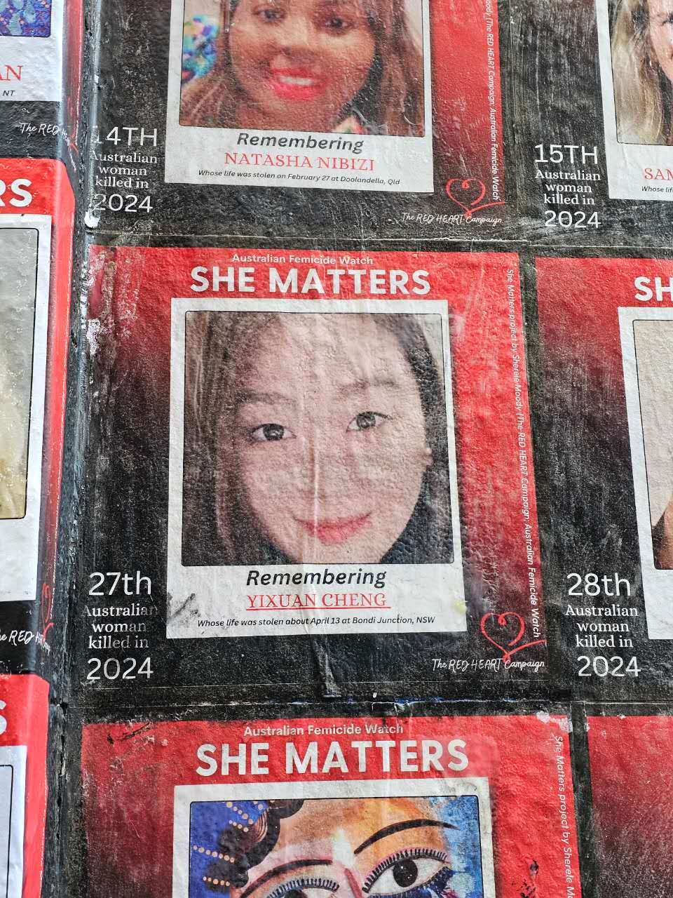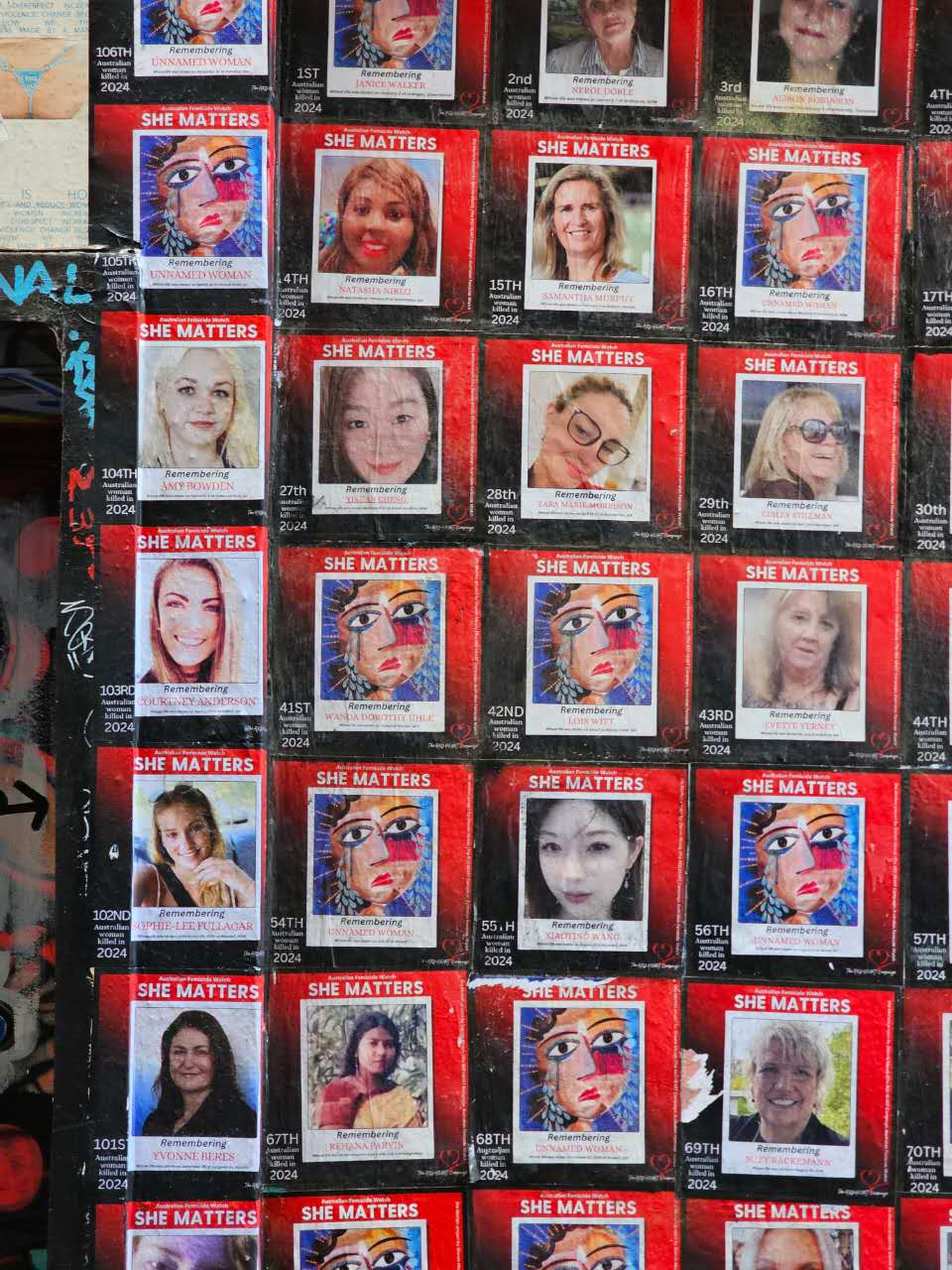 为了悼念这些遇害的女性、唤起社会对女性处境的重视,澳洲记者、女性权益保护机构Femicide Watch的创始人Sherele Moody在社交媒体上发布了“She Matters”系列纪念帖子。