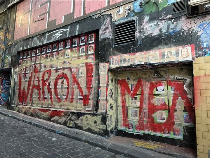 最严重的一次发生在2025年5月,照片墙刚设立仅两个月,一名男子就用红色的油漆在墙上写下了醒目的“War on Men”几个大字,几乎覆盖了整面墙。