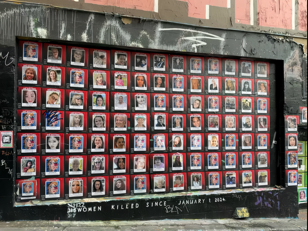 起初,壁画上展示了从2024年1月1日至设立当天,共116位遇害女性。
