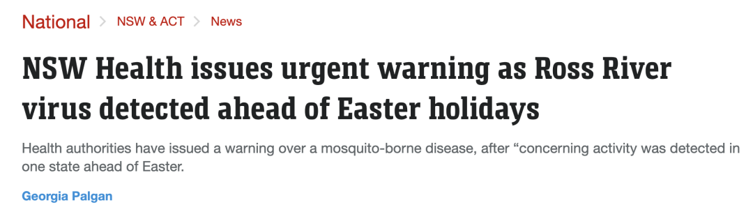 此外,今年新州已经检测到多种蚊媒病毒,包括Japanese encephalitis(日本脑炎)和Barmah Forest virus,说明整体环境风险正在上升。