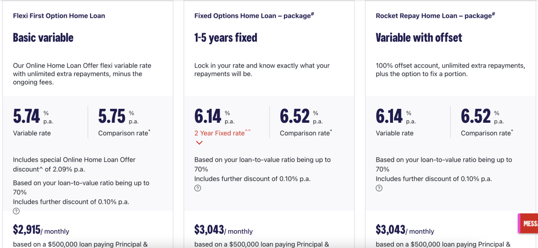 3年固定(Packaged, <70% LVR):6.74% p.a.(6.67% 比较利率)