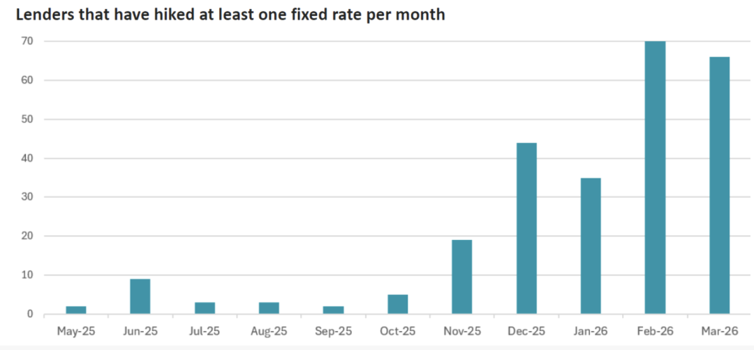 受澳洲储备银行(RBA)加息影响,银行资金成本上升,固定利率普遍上调。