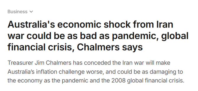 财长Jim Chalmers警告称,伊朗冲突可能会将通胀重新推高至接近5%