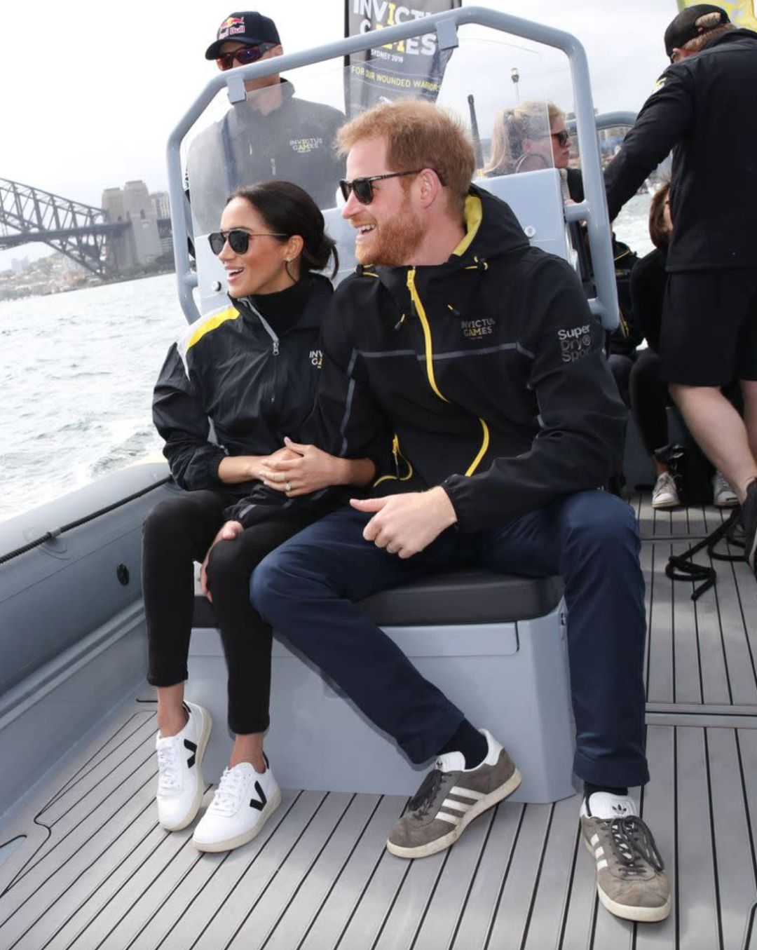 今天上午,哈里王子与梅根在悉尼港与“不可征服运动会澳大利亚分会”(Invictus Australia)一同乘船巡游。该组织为“不可征服运动会”(Invictus Games)在澳大利亚的分支机构,而该赛事正是由哈里王子发起创立。