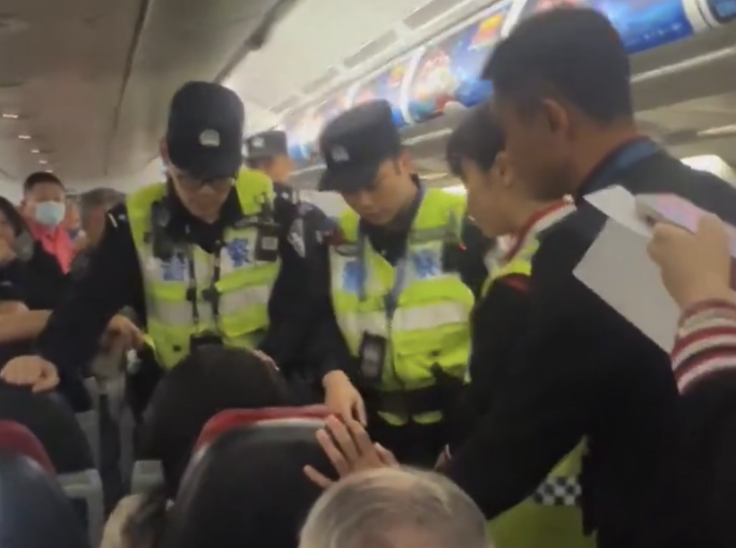 警方登机带离女子
